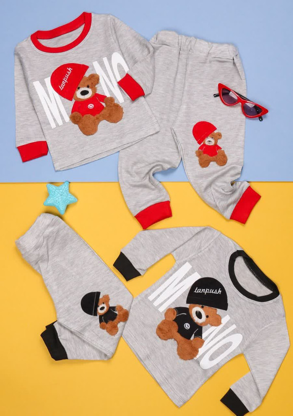بلوز شلوار پسرانه جذاب و شیک طرح :خنک و بانمک خرس کلاه کج، جنس :پارچه ملانژ لاکرا ساخته شده و بسیار راحت و مناسب برای بازی و فعالیتهای روزمره است!