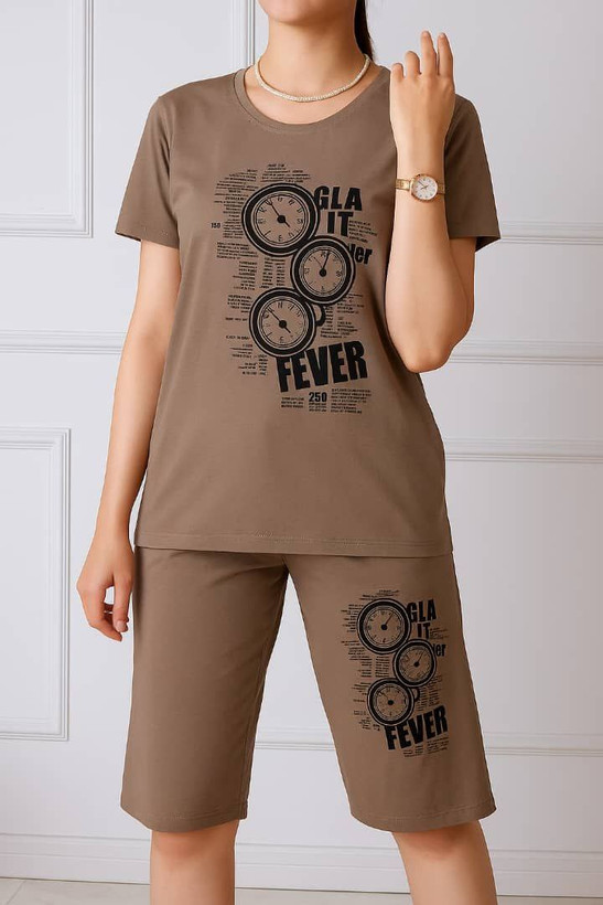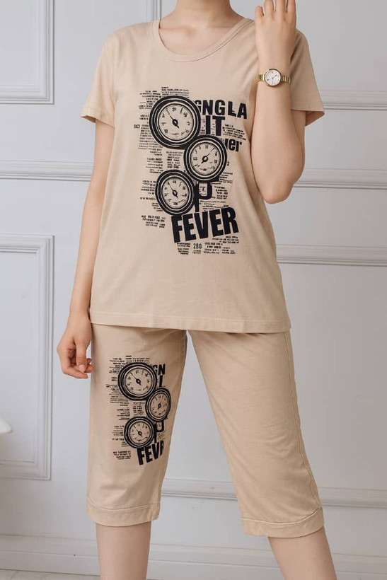 ست تیشرت و شلوارک چاپ ساعت از جنس اسپان اعلا تولید شده؛ سبک، خنک و مناسب استفاده روزمره و تابستان است.